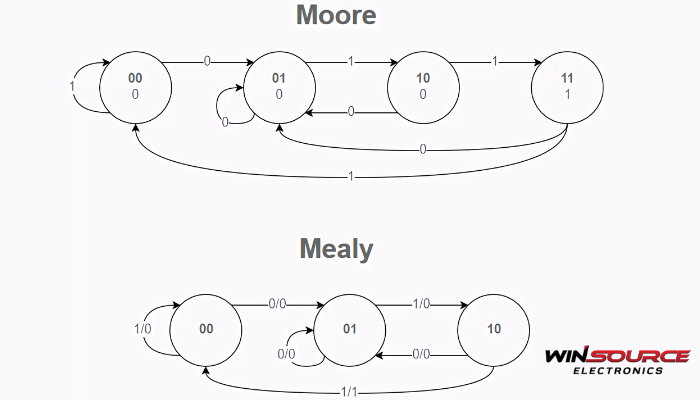 * QuestionWhat is the difference between the Mealy state machine and the Moore state machine?* AnswerThe main difference between a Mealy state machine and a Moore state machine lies in how the outputs ...